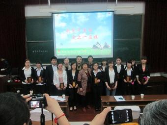 参加决十二位选手经过初赛和 复赛的选拔脱颖而出。比赛分为“生动讲课和说“实时说两个环节。在“生动讲课”环节中,选手们仪表端庄大方、讲课语言生动流畅,其中聂莹莹同学以“勾股定理”为题目,通过清晰的思路和详细的阐述讲解了勾股定理的证明及应用,获得了在场老师和同学的一致好评。而后的“实时说课”环节,选手们条理清晰讲课重难点突出,丰富的语言和肢体动作向大家展示了他们优秀的课堂驾驭能力。 比赛最后,柴新宽老师对此次比赛进行点评,他首先肯定了参赛同学在比赛中的精彩表现,同时鼓励同学们将理论与实践相结合,端正教学心态规范教学语言,用教学手段为教学服务此外,本次比赛采用新浪微博互动累计参赛选手人气,在吸引同学们的眼光的同时使比赛的形式更加丰富多样化。