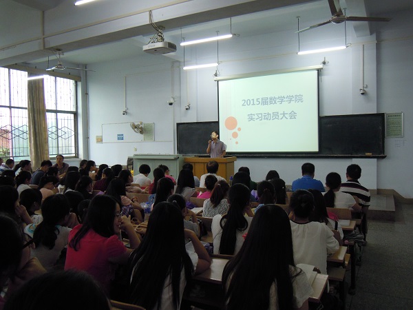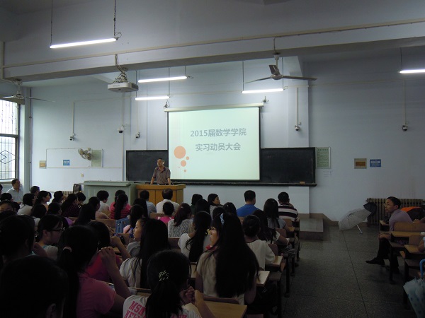 9月1日下午,数学学院在阶梯楼101教室召开2011级实习动员会,柴新宽副院长、李富杰副书记、张建海等老师出席动员会,2011级的全体同学参加了动员会,会议由李钧涛老师主持。