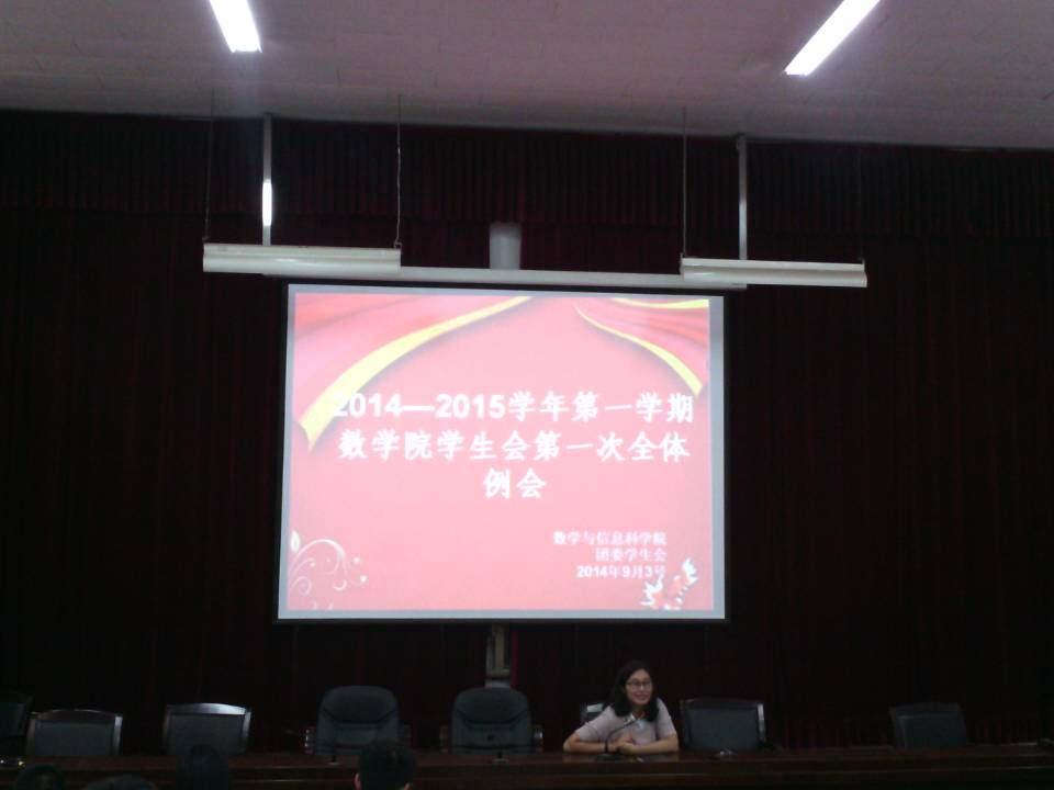 回顾昨日,展望未来,着眼当下。9月3日中午,数学与信息科学学院于院多功能报告厅召开2014~2015年度第一次学生会全会。院团委书记兼2013级辅导员张瑾担任主讲人。数学院2012级与2013级班长、团支书、部分社团干部及全体学生会成员一同聆听了此次会议。