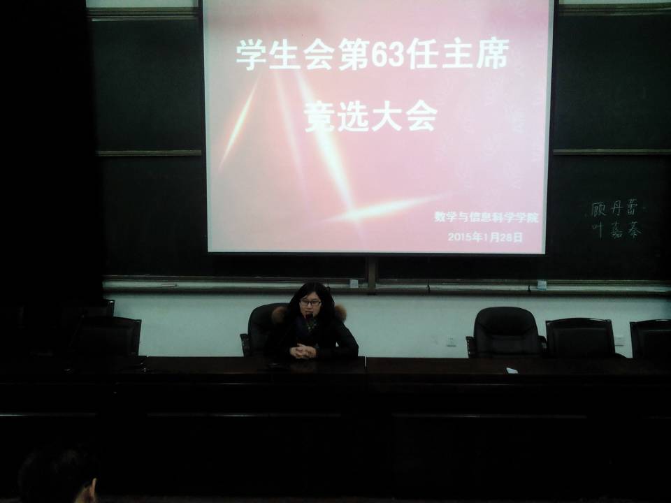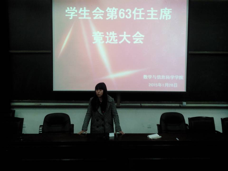 为提升学生会内部活力,调动成员工作积极性,1月28日中午,数学与信息科学学院于院多功能报告厅召开团委学生会第63任主席竞选大会。院团委书记兼2013级辅导员张瑾,2012级辅导员杜亚璇、2014级辅导员吴小林、各班班长、团支书及全体学生会成员共同参加了此次大会。