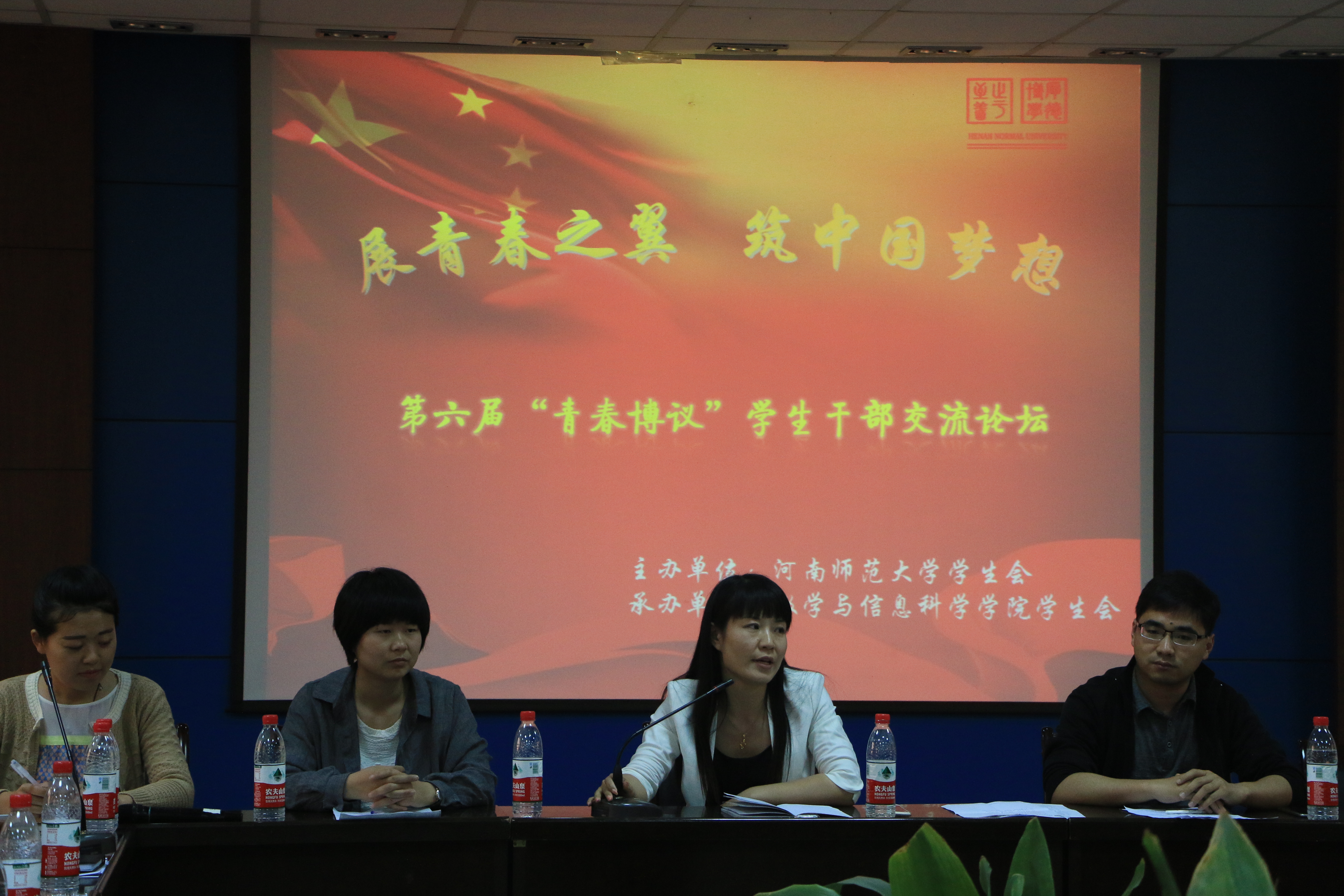 展青春之翼,逐中国之梦。5月9日上午,由我校学生会主办,数学与信息科学学院承办的第六届“青春博议”开幕仪式暨首场主席论坛在化学化工学院北楼多功能报告厅举办,校团委副书记孙红艳,校团委宣传部武煜楠,数学与信息科学学院团委负责人杜亚璇以及来自各学院100余名学生参加此次论坛。