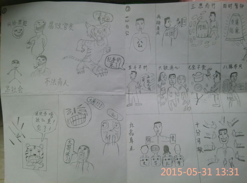 此次活动征集的作品有文章、音乐舞蹈视频、漫画、手抄报、明信片等。在作品征集阶段,各班负责人积极向学生宣传“四进四信”精神,号召学生积极学习贯彻习近平总书记系列重要讲话精神。在积极学习“四进四信”讲话精神氛围的感染下,同学们纷纷动手,踊跃参与,充分发挥自己的才能,将大胆的想法转化为一个个优秀的作品。同学们的文章或优美动人、感情真挚,或客观犀利、以理服人。在征集的漫画中,有的以引人入胜的情节脱颖而出,有的则以沉稳大气的画风令人赞不绝口。通过自己的作品,同学们多角度、全方面地表现出对“讲话精神”和“四进四信”的认识,也展现出自身的青春魅力,传递正能量。在作品评选阶段,评委们根据不同题材从造型设计、颜色搭配、现实意义、情感流露等多方面进行作品评比,共选出十二份优秀作品。