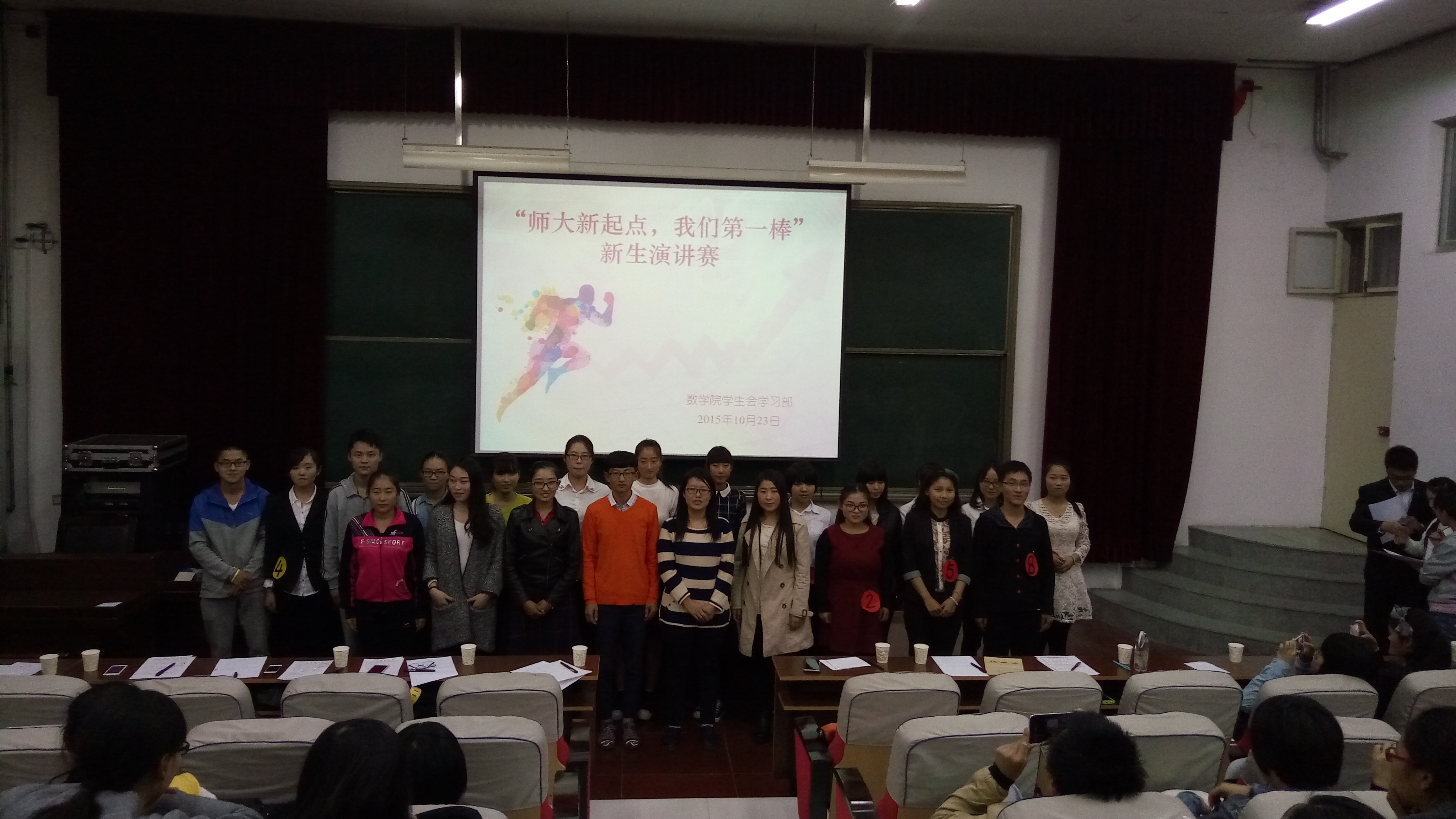 青春如火,点燃你我;八方学子,相聚师大。为深入贯彻学习郑邦山书记的讲话精神,10月23日,数学与信息科学学院于院多功能报告厅举办“师大新起点,我们第一棒”双语演讲比赛。2014级、2015级辅导员吴小林担任本次比赛的评委嘉宾。我院2015级百余名学生踊跃参加本次活动。