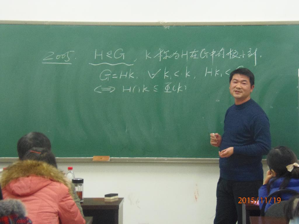 11月19日晚,扬州大学数学科学学院博士生导师缪龙教授在数学楼107教室做了题为“有限群的p-局部化与群系构造”的学术报告。报告由数学学院院长李兴校教授主持,学院部分青年教师及研究生参加了此次报告。