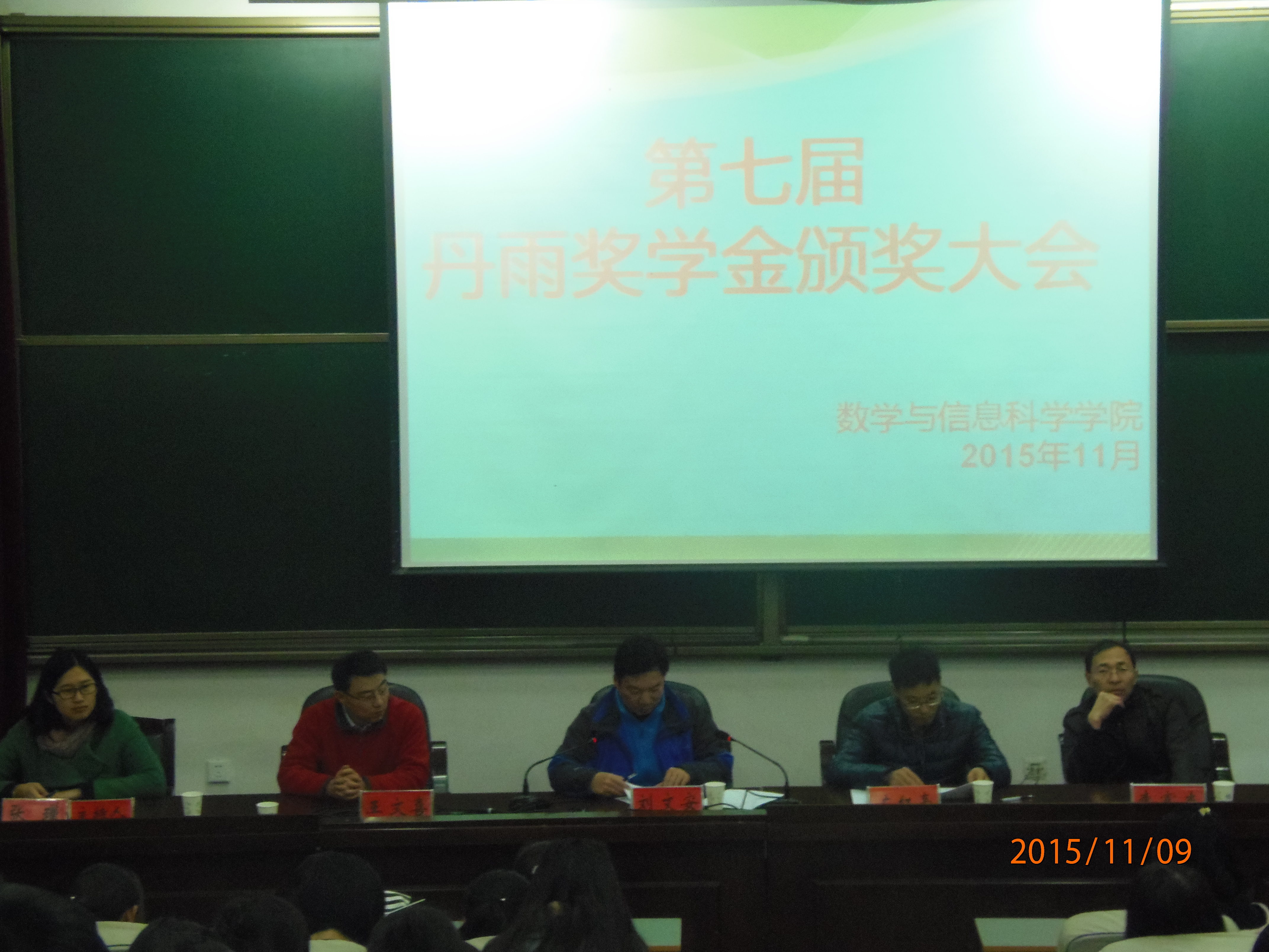 成才高峰勤为径,丹雨传爱铸梦飞。11月9日下午,数学与信息科学学院于院多功能报告厅举办第七届“丹雨”奖学金发放仪式。院党委书记刘文安,院党委副书记李富杰,副院长左红亮,院团委书记兼2013级、2015级辅导员张瑾,2014级、2015级辅导员吴小林,“丹雨”奖学金的出资人、数学与信息科学学院89级校友谷永春先生的代表王文喜先生和获奖的先进个人以及学生代表近200人参加发放大会。大会由张瑾老师主持。