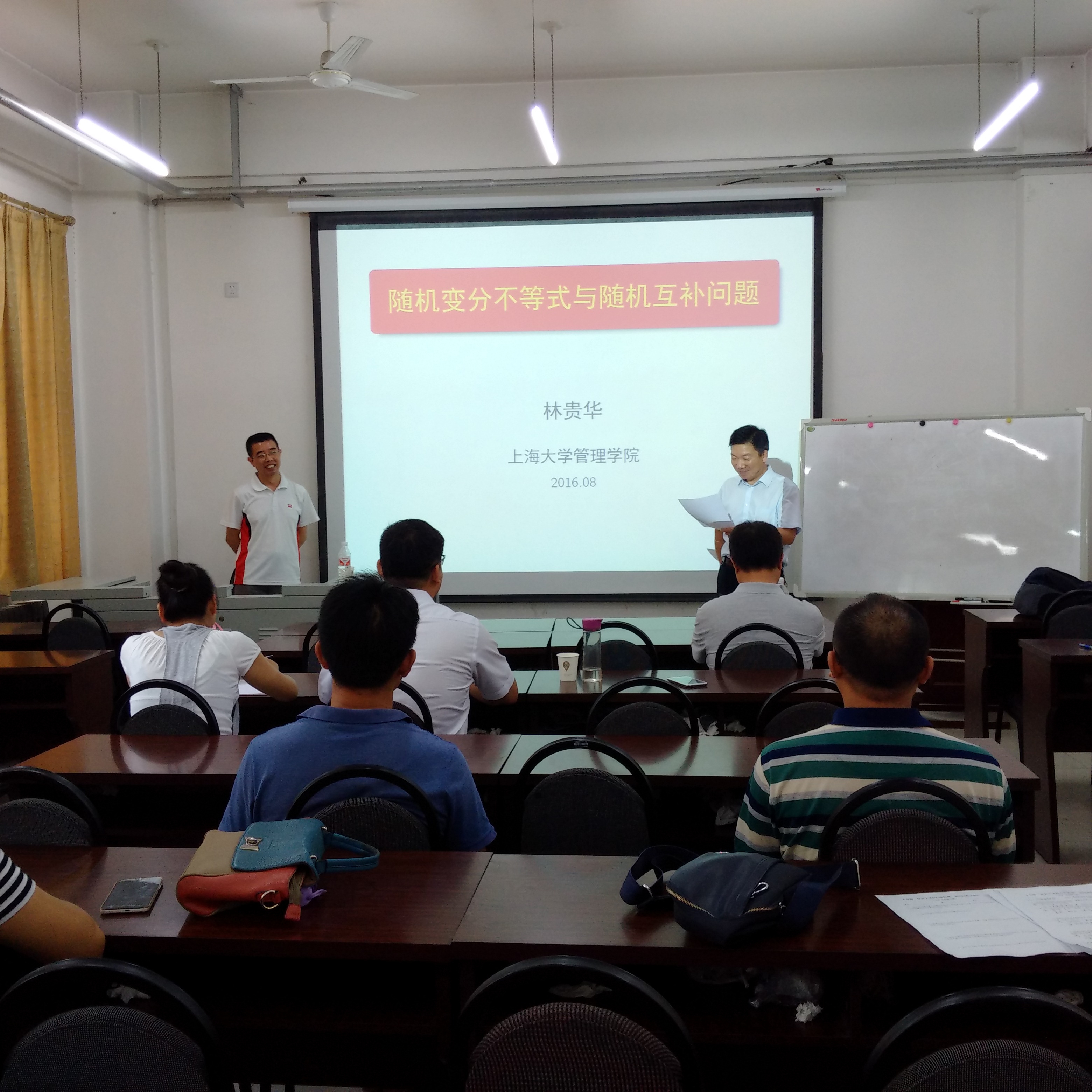 8月14日上午,应数学与信息科学学院邀请,上海大学管理学院博士生导师林贵华教授在我院多媒体教室作了题为“随机变分不等式与随机互补问题的若干进展”的学术报告,我院部分青年教师和研究生代表参加了此次报告会。报告会由学院院党委书记刘文安教授主持。