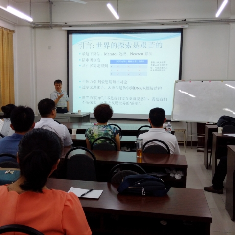 杨晓光研究员从繁杂纷呈的社会现象、社会行为的表现中找到其背后的简单规律,并用数学模型刻画。以“一次旅行引发的思考”开始了他生动有趣的报告,分别用扩展的Degroot模型、演化博弈模型、门槛模型等对一些社会行为建模,揭示这些社会行为的演变机理,加深对社会行为的认知。报告结束后,杨晓光研究员和与会师生进行了交流互动,现场气氛异常活跃。