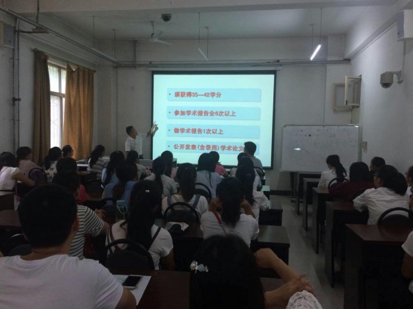 会上,高老师从培养条件等方面详细阐述了我院研究生教育的具体情况,并以规章制度、各学期大致安排、学分获取和论文写作等为主要内容讲解了我院研究生的培养流程和管理体制。着重部署了研究生在学期间各项工作流程及时间表的安排,仔细划分了在校六个学期需要完成的主要事宜,分别介绍了参加学术报告、做学术报告以及公开发表学术论文对学分所占的比重。随后马老师向大家讲授研究生新生入学需要准备的材料以及注意事项,并简要介绍了研究生的校园文化。两位老师细致耐心的讲解赢得在座各位同学的热烈掌声。