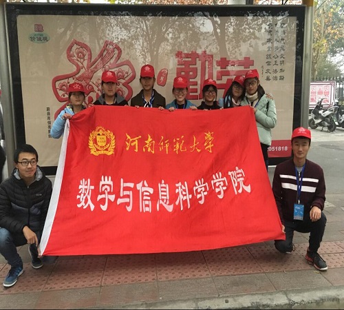 近来新乡创建文明城市,实施公交车免费乘坐的政策。为使乘客能够更加安全地乘坐公交车,11月20日下午2点,数学与信息科学学院实践部带领志愿者在师大校外附近公交站牌处维持乘客的乘车秩序。