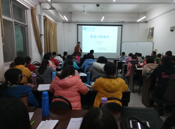 2016年11月21日晚,数学与信息科学学院积极响应第六届研究生“学术活动月”的号召,邀请崔鲁宾老师在数学学院107教室作了题为《数值代数漫谈》的学术报告。数学学院青年教师和研究生等60多人参加了此次报告会。报告会由研究生辅导员马迎宾老师主持。