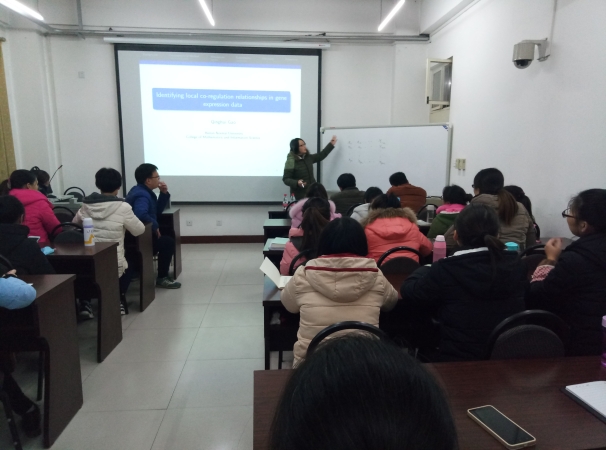 为提高研究生科研素质,搭建起学术交流平台,数学与信息科学学院于2016年11月21日晚邀请高清慧老师在数学学院107教室作了题为《识别基因表达数据中的局部共调控关系》的学术报告。数学学院青年教师和研究生等60多人参加了此次报告会。报告会由研究生辅导员马迎宾老师主持。
