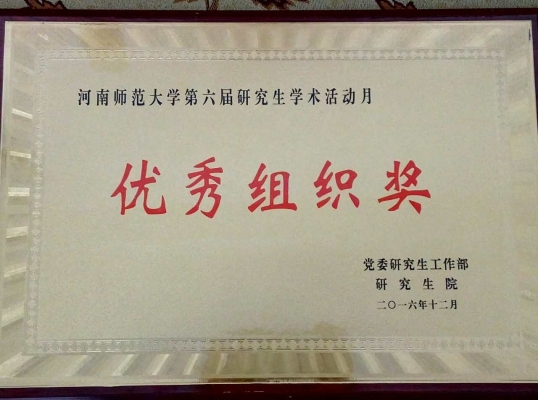 2016年12月16日上午九点,由党委研工部、研究生院主办的我校第六届研究生“学术活动月”闭幕式在我校新554党校教室(阶梯楼102)举行。闭幕式上宣读了全校优秀组织奖和校硕博论坛一、二等奖的名单,我院荣获学术活动月“优秀组织奖”称号,杨娟同学获得“校硕博论坛二等奖”称号。