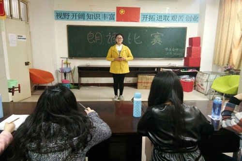 为让广大师生从中国历代名家名篇中提炼思想精华和道德精髓,并赋予其时代新内涵,从中树立正确的世界观、人生观、价值观、荣辱观,真正的做到让中华优秀传统文化成为涵养社会主义核心价值观的重要源泉,2017321日至22日中午,数学与信息科学学院在本院学生会办公室举办了“经典照亮人生”朗诵比赛初赛。