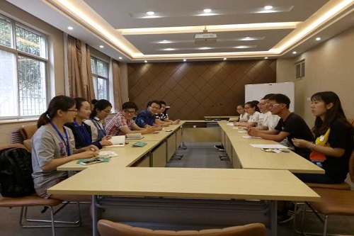 会议伊始,我院主席张倬宾对湖北大学数学与统计学学院调研考察组的到来表示热烈欢迎,并简要介绍我院的基本情况。接着,双方就学院特色品牌活动进行交流,还对彼此均举办的数学文化节活动的形式、内容和性质等方面进行深入的探讨,互相借鉴经验与方法。随后,在学习方面,学习部部长韩骁针对对方提出的“如何处理学生上课不认真的情况”有条理地罗列出四种方式――教务处派遣老师巡察、班主任不定期听课、自律部不定期查课和班级自发组织上交手机。在体育活动方面,湖北大学数学与统计学学院体保部负责人秦越与我院体育部部长王金虹在“如何提高学生参与体育活动积极性”问题上交流各自的经验方法。在生活方面,我院副主席胡艳婷向对方介绍了我院两周一次宿检、宿检排名前五名给予奖励和寝室晚上11点半统一断电的制度。然后,湖北大学数学与统计学学院暖阳志愿服务队负责人钟明伟与我院实践部部长吴亚楠在“暖阳志愿服务队”和“蒲公英志愿服务队”的组成、活动等方面进行了交流学习,互相分享实践后积累的经验。整个过程中,会议现场气氛和谐,双方互动真诚自然。最后,张俊玮老师对我院的热情与诚意表示感谢,同时表示来到这里收获了好思路、好做法、好经验,并且都值得进一步地研究与学习。双方还就其他问题交换了看法和意见,并一致决定,今后继续保持密切联系,加强交流合作,在以后的各项活动中互相学习,携手共同发展。