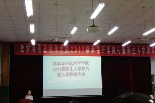 才华横溢缘定今宵,格物致知梦起师大。9月19日晚,数学与信息科学学院于万人餐厅三楼多功能报告厅举办2017级新生开学典礼暨入学教育大会。我院党委书记刘文安,党委副书记李富杰,副院长黄广月,张瑾,各年级辅导员,班主任,任课教师以及2017级全体新生出席本次典礼。