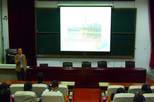 讲座伊始,杨青龙对我院学生勤学好问的精神面貌表示肯定,并大力赞赏我院近年来所取得的进步。随后,师应来从历史沿革、校园景色、院系设置等方面对中南财经政法大学作了详细介绍,并表示欢迎我院学子入校深造。其中,师应来着重展示了该校统计与数学学院的学科设置、学院配置的师资力量以及教育资源,并表示该院将大力实施研究生人才培养计划,为在校研究生提供绝对的研究资源与学习保障。同时师应来就该校本学科发展现状、专业招生格局、高校历史沿革等影响院校报考的选择因素做了更为全面的分析。师教授诙谐的语言、独到的见解不时引起在场学生的阵阵掌声,场内始终洋溢着轻松愉悦的气氛。最后,杨青龙、师应来与在场学生进行交流,对与会学生提出的一系列问题给予了详细解答,并以己为例,切身为学生阐述有关考研的方方面面,加强学生对考研问题的关注。
