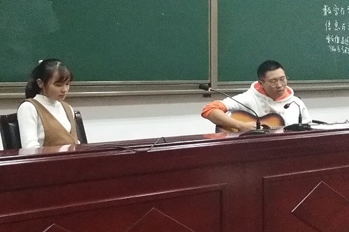 1019日晚,17级数学五班在数学院多媒体报告厅举办班级联谊活动。班主任梁彦超出席活动并发表重要讲话。全班同学积极参与,并进行多才多艺的自我展示。