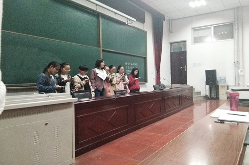 班主任首先对我们所学习的数学专业做详细的介绍。主要包括我们之后将遇到选择不同专业的问题,及选择‘数学与应用数学’或‘信息与计算科学’两门学科的课程设置,又讲解两个专业所对应的未来就业方向。老师以往届考研同学为例向大家讲述,如果考研所面临的选择学校,选择专业的问题。并拿出自己数学分析的专业书籍,让大家互相传阅。为了让同学们走出宿舍,让班集体成为一个真正的大家庭,同学们一一的进行了自我介绍。从家乡景点,到特色小吃,从个人爱好到开学感受。全方位的自我展示让同学们相互认识,又相互了解。介绍完毕,表演开始。班长郑皓,手握吉他深情演唱,一首《拥抱》,将全班带入的欢乐温馨的氛围当中,之后每个宿舍都带来精彩的节目。有全体合唱《奇妙能力歌》《七月上》等歌曲。带给大家的,不仅仅是美妙的歌声,更是歌词中满满的希望和祝福。就像歌中所唱‘愿乘风破浪,踏遍黄沙海洋’。真心希望同学们,可以敢于开拓,勇往直前。班委们精心准备小品《超级大学生》将气氛引向高潮,同学们掌声连连,笑声不断。小品在逗人发笑的同时,也反映出校园出现的不文明占座的问题。希望通过小品的形式可以给大家一些提醒,让我们的校园更加文明。