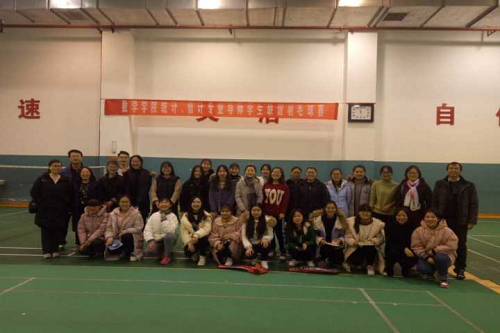 比赛分为班级内部预赛和班级间联谊决赛。每项分男单、女单、女双、混双四项进行,采用21分制,一局定胜负。在班级内部预赛中,各选手热情参与,团结协作,敢拼敢打,每球必争。既有战术指挥、双方配合,又有体力和耐力的比拼,既有比赛的激烈,又有联谊的情谊。通过激烈的角逐,应统班的王佩伊、毛改丽和信计班的杜梦桓、朱文毫、张玉心等选手脱颖而出,顺利进入决赛。在班级间联谊决赛中,两个班的优胜选手都在决赛中展示出最好的竞技状态,整场比赛高潮迭起,精彩不断。应统班导师苗雨和学生选手王佩伊对阵信计班导师崔鲁宾和学生选手杜梦桓的混双比赛中,双方表现优异,分分必争,一度将比赛推向高潮,引来同学们的阵阵欢呼。比赛结束后,苗雨院长、崔鲁宾老师、王继霞老师和刘丽敏老师为优胜选手颁发奖品,并与信计班和应统班的全体同学合影留念。
