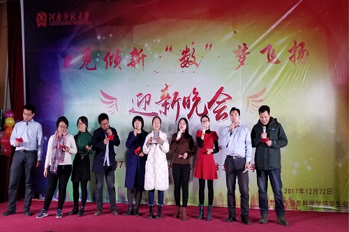 光熠数院,镌绘初心。12月22日晚,数学与信息科学学院于万人餐厅三楼多功能报告厅举办“e见倾心,数梦飞扬”暨2017级迎新晚会。学院团委副书记吴小林以及各年级辅导员、班主任莅临现场,与学院学生一同观赏演出。