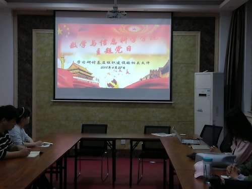 为贯彻落实全面从严治党要求,推进“两学一做”学习教育常态化制度化,严肃“三会一课”等党内组织生活制度,根据上级有关文件精神,我院于4月27日在数学与信息科学学院党员活动室召开关于学习研讨基层组织建设相关文件的主题党日活动,就进一步加强和规范基层党支部“主题党日”活动和“三会一课”等党内组织生活的制度进行深入学习讨论和研究,学院各支部委员参加会议。