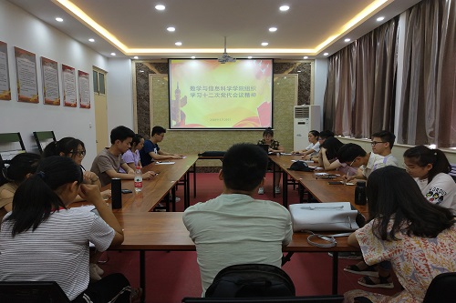 为学习贯彻十二次党代会议精神,全面落实党的十九大精神,5月29日中午,数学与信息科学学院于院党建活动室组织开展学习十二次党代会议精神座谈会。院2016级预备党员、2017级班长和团支书积极参与本次会议。