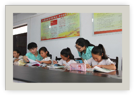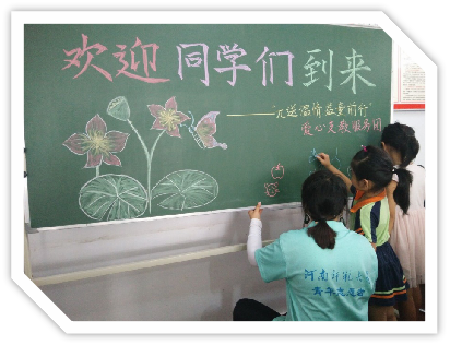 走进乡村,爱心支教。根据每个孩子的不同情况,队员们对其课业进行辅导,并结合实际情况制定详细地课程计划。