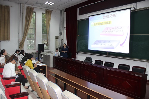 此次讲课说课内容分为:教材分析,学情分析,教法学法,教学过程,板书设计,教学评价6个板块,从多方面对选手进行综合考核。选手们风格各异、各展风采,比赛过程异彩纷呈。其中选手李建钊使用工具作图,化抽象为具体,这种更利于学生理解全等三角形条件与概念的讲课方式博得在场观众的一致好评。选手柳欢欢注重创造性的培养,采用学生先自行练习再进行讲解的方式,让学生在学习的过程中养成勤于动脑的习惯,同样让人印象深刻。选手展示完毕后,评委老师朱亚丽作总结发言,她首先对各位选手关注现实、注重创新力量的表现表示肯定,随后点出比赛过程中选手出现的问题,希望各位选手更正改进以取得长足进步。最后,经过评委的综合判定,选手李建利荣获第一名,选手柳欢欢获得第二名,活动在掌声中落下帷幕。