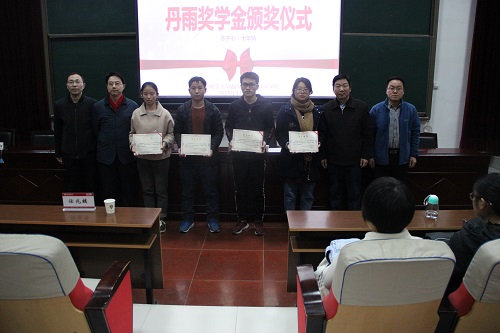 颁奖典礼上,副院长高福根宣读第十届“丹雨奖学金”评选方法和获奖学生名单。随后,高福根详细介绍了丹雨奖学金的设立背景,并讲述了“丹雨奖学金”设立的重要意义。接着,与会领导老师及王文喜先生为获奖学生颁奖并合影留念。获奖学生代表李帅发表获奖感言,他在发言中表达了对谷永春先生、学院领导、老师的感谢以及对学院的美好祝福,同时,他表示自己坚信机会总是留给有准备的人,每一份成功的背后都需要付出辛勤的汗水。
