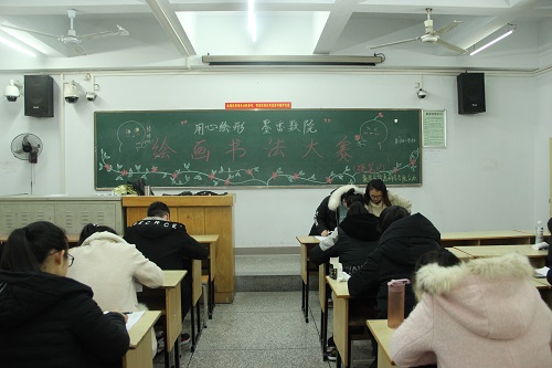 为全面贯彻“坚定文化自信,推动社会主义文化繁荣昌盛”的人文思想,培养学生师范技能,展现学院文化生活,12月2日,数学与信息科学学院于启智楼举办“用心绘行,墨香数院”绘画书法大赛。学院乐书班指导老师董乐应邀担任比赛评委,学院各年级学生积极参与其中。
