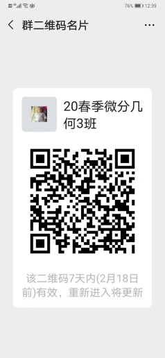 39 | 微分几何 | 18数学2班 | 王雅宁/超星学习通、微信群 |