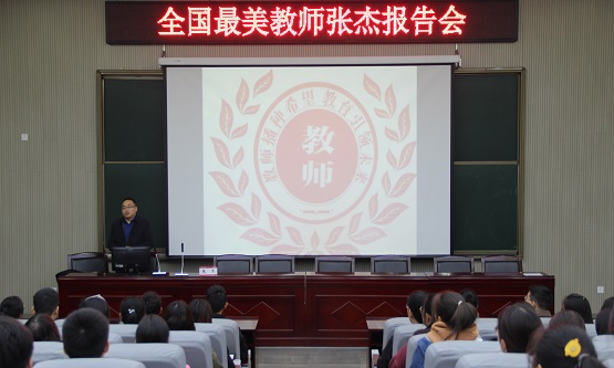 院党委书记姜良在报告会上致辞。他指出,张杰与妻子王秀秀扎根基层教育十一年,他们坚持不抛弃、不放弃,用无私的付出、执着的追求为山村孩子打开希望的窗,是全体师生学习的榜样。他希望在场师生一要提高责任意识,忠诚热爱教育事业,树立崇高职业理想和追求;二要尊重信任学生,平等对待学生,涵养教师的人文美德;三要注重言传身教,全方位为人师表,献身教育,甘为人梯。