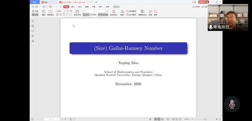 毛亚平老师作了题为“(Size) Gallai-Ramsey Number”的学术报告。毛亚平老师从经典的 Ramsey问题的起源和发展历史;然后介绍限制染色方式的Ramsey问题--Gallai-Ramsey问题;最后毛教授介绍他们团队在Gallai-Ramsey数方面的最新成果和一些公开问题,鼓励大家关注和研究这些问题。
