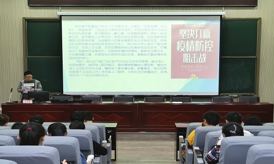 本次活动由刘豫霖、刘苗、袁庆彬三位优秀学生代表进行宣讲,分别围绕着“志愿服务”和“勤学上进”两个方面向同学们分享经验。在志愿服务方面,刘豫霖通过分享疫情期间呼吁家人捐助物资、帮助农民售卖粮食和假期慰问老人、看望留守儿童等志愿服务活动,展现当代大学生乐于助人、勇于奉献的奋斗精神,并表示将继续在实践中增长本领,提升自己,为社会服务贡献自己的力量。袁庆彬结合自身防疫志愿服务经历,讲述志愿服务期间所见所感,畅谈新时代青年在疫情防控工作中的爱国情怀与责任担当。他呼吁同学们积极参与疫情防控,关注老人,为老人提供精神慰藉及心理抚慰,传递暖情正能量。在勤学上进方面,刘苗通过分析个人学习经历,提醒同学们相对于高中技巧性学习,大学学习更注重思维能力培养,需要同学们将理论知识与课下练习相结合,常进行反思总结,做到温故而知新。