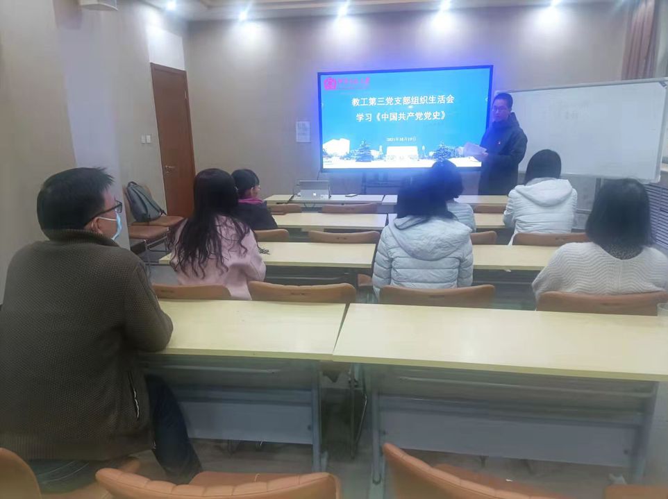 10月19日上午,教工第三党支部在数学楼103召开“以案促改”、党史学习教育专题组织生活会,全体党员参加,会议由裴永刚主持。