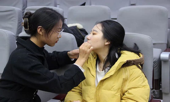 此次比赛为评分制,每位参赛选手带一名模特进行上妆。活动伊始,主持人介绍本次比赛的相关规则及注意事项,并向参赛选手解读评分细则。随后比赛正式开始,在紧张的比赛氛围中,选手们迅速进入状态,有条不紊地为模特上妆。在化妆师娴熟的技术、巧妙的搭配下,模特们的妆容逐渐变得精致华丽。化妆结束后,模特们依次上台展示,面部妆容都独具特色,或惊艳,或唯美,或清新,无一不展现着参赛选手的绝妙手法。经评委审慎的讨论与考虑,陈寒、王宏晔、王鹤静、石松月以细致的手法及其创作的精致妆容脱颖而出,成功入选彩妆小组。比赛结束后,各位评委、参赛选手以及模特合影留念,此次彩妆大赛就此落下帷幕。