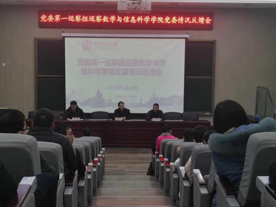 12月22日下午,按照校党委巡察工作安排,校党委第一巡察组向数学与信息科学学院反馈巡察工作情况。巡察组组长李保华、巡察组成员、学院领导班子及教职工参加会议。会议由数学与信息科学学院院长苗雨主持。