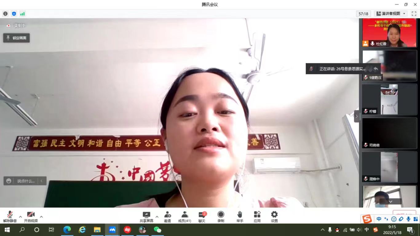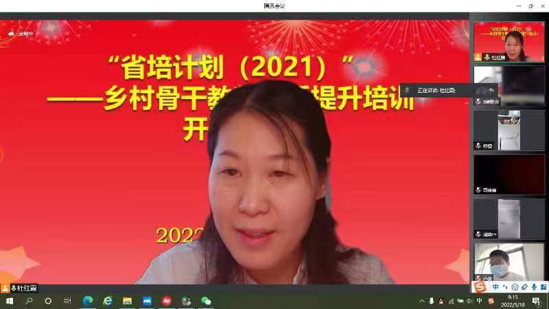 2022518日,“省培计划(2021)”——乡村骨干教师素质提升培训初中数学班于腾讯会议上开班。开班典礼由班主任杜红霞老师主持,数学与信息科学学院院长苗雨教授参加了开班典礼并致欢迎词,典礼结束时,全体学员在线上进行了云合影。