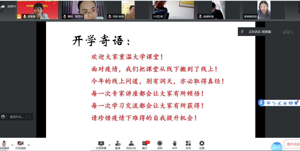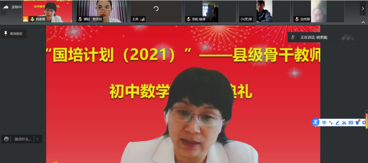 2022年5月19号上午,由我院承担的2021年“国培计划”县级骨干教师培训项目(初中数学)开班典礼在网上举行,副院长王凤产和继续教育办公室主任杜红霞出席了开班典礼。