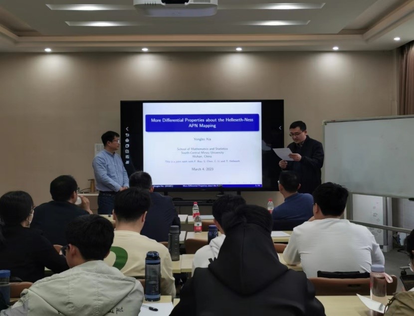 03月04日下午,应数学与信息科学学院邀请,中南民族大学夏永波教授为数学与信息科学学院师生作题为“More Properties about the Helleseth-Ness APN functions”的专题报告,董乐副院长主持报告会,相关专业教师和研究生参与此次报告会。
