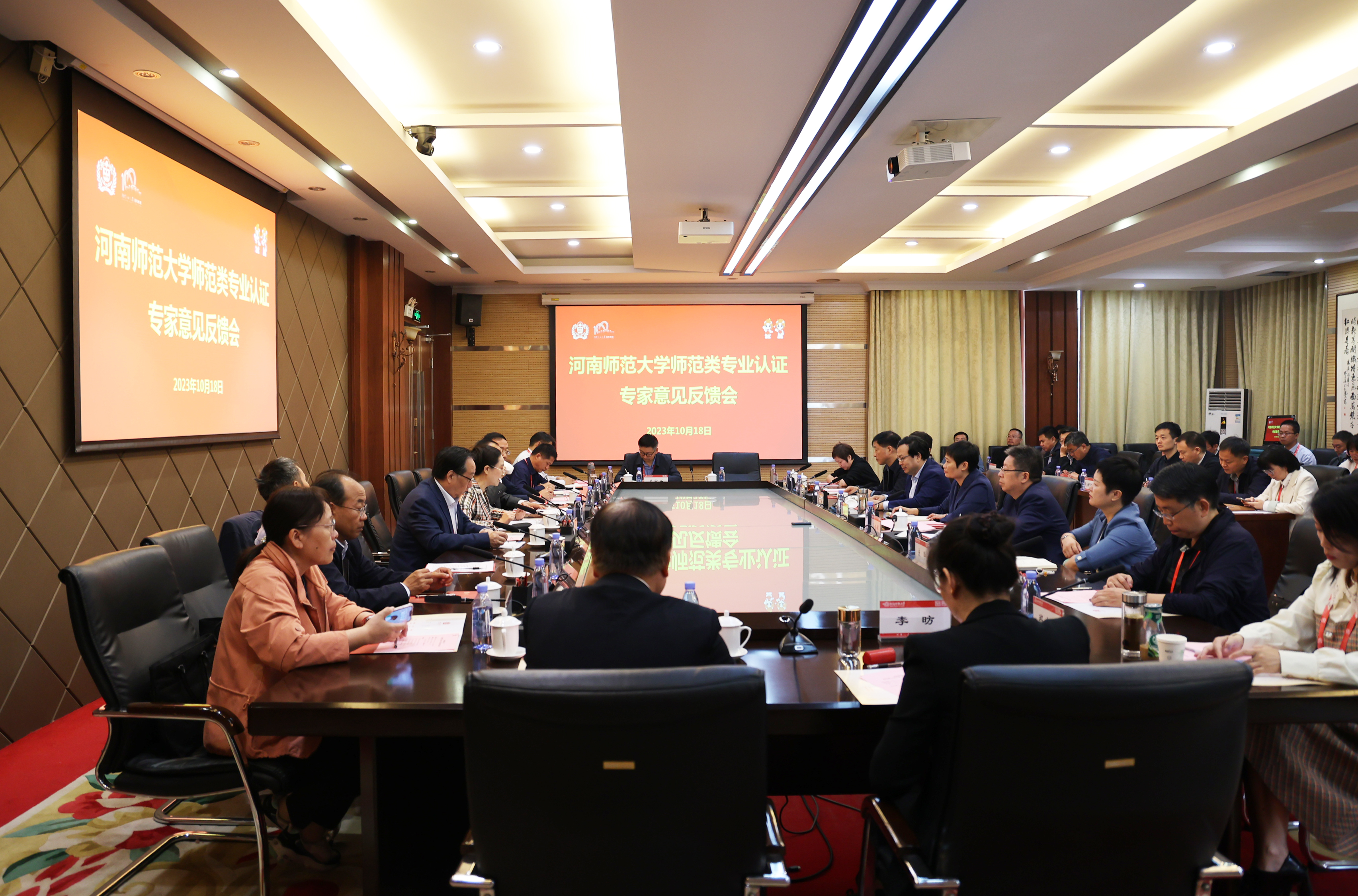 10月18日,教育部师范类专业认证专家意见反馈会在我校勤政楼第三会议室召开。联合认证专家组全体成员,河南省教育评估中心副主任张新民,校长冯淑霞,校党委副书记、工会主席马治军,党委常委、副校长李雪山,副校长宋晔,党委常委、纪委书记、监察专员王玉良出席会议。相关职能部门负责人、本次认证相关学院及其他师范类专业所在学院负责人参加会议。反馈会由联合认证专家组组长、黑龙江省教育评估院院长景丽英主持。