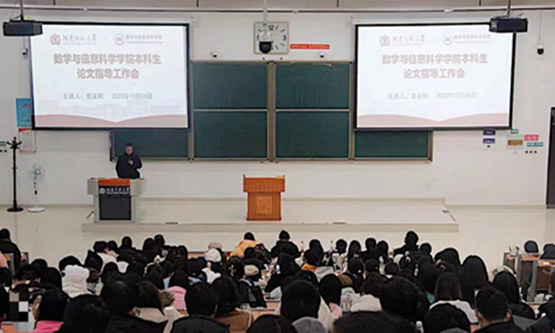 为切实提高2024届毕业生论文写作水平,及时有效解决学生论文写作阶段的疑问和困惑,确保毕业论文工作顺利进行,12月27日下午,数学与信息科学学院于文昌楼302教室举办本科生毕业论文指导会。副院长裴永刚出席活动,2024届毕业生参加。会议由2020级辅导员方好好主持。