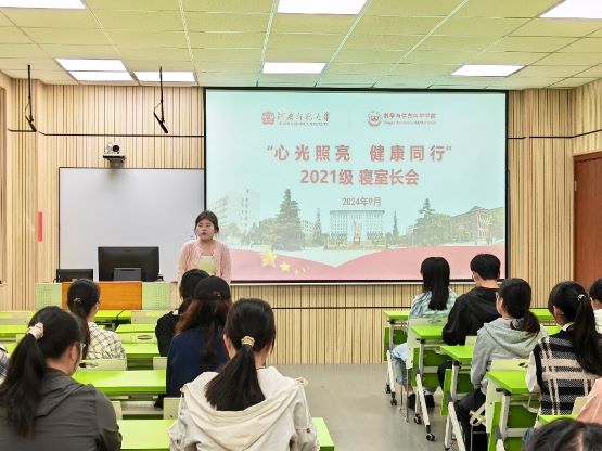 会议对心理健康的重要性、常见心理问题的识别方法、应对策略以及寝室长在心理健康工作中的角色和职责等内容进行详细讲解。2024级辅导员方好好以详尽数据为支撑,结合生动案例对大学生心理危机的高危因素进行了全面剖析。她指出,寝室长作为寝室的核心人物,肩负着关心室友心理健康、营造良好寝室氛围的重要责任。希望寝室长积极主动承担起朋辈帮扶的角色,及时掌握室友真实的心理动态,对于发现的危机问题,及时干预、及时上报。2023级辅导员宋梦妮希望全体宿舍长通过观察与交流等方式,时刻关注本班同学学习状态、人际交往、睡眠情况、情绪状态等心理状态,发现问题及时与老师联系沟通,帮助同学们尽快解决问题,必要时可拨打校医院或心理健康教育中心的电话,正确对待心理障碍,塑造健全人格,提升社会适应能力。