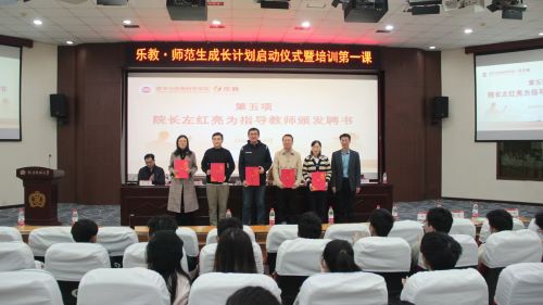 左红亮在致辞中对计划的启动表示热烈祝贺,向支持师范生培养工作的一线教师们表达衷心感谢。他指出,作为“‘名师共育’数学师范生成长工作坊”品牌项目系列活动,“乐教”师范生成长计划是学院引领师范生卓越成长的重要措施。希望数院学子坚定理想信念,涵养扎实学识,砥砺赤子之心,瞄准基础教育的现实需要,不断提升自己研究、分析和解决真实问题的能力,做真正有理想、有情怀、有能力、有格局的新时代“大先生”。