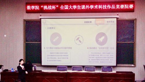 为贯彻落实国家双创工作部署,激励学生积极投身科学探索与创新实践,11月17日晚,数学与统计学院于学院报告厅举办“挑战杯”全国大学生课外学术科技作品竞赛院赛。院党委副书记王岩出席,校网上伟德平台处创新实践科科长王科、数学与统计学院教授杨新光、数学与统计学院副教授关晓红受邀担任评委。