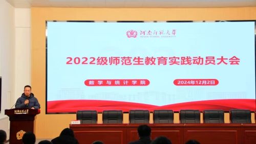 为深入贯彻教育实践理念,做好教育实践工作,12月2日晚,数学与统计学院于青年活动中心开展本科生教育实践动员大会。院党委副书记王岩、副院长裴永刚出席,实习指导教师代表化小会受邀主讲,实习指导老师及2022级全体本科生参与。会议由院党委组织员袁刚主持。