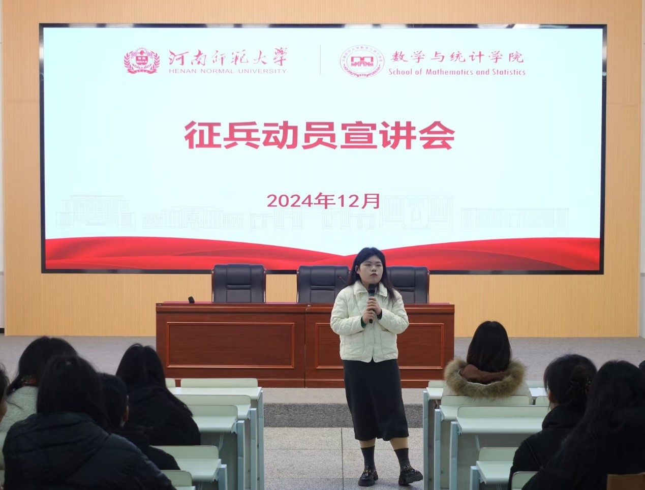 为宣传和普及国防知识,增强在校生爱国热情和国防意识,激发数院学子入伍参军的积极性和自觉性,12月23日上午,数学与统计学院于学苑餐厅三楼树蕙堂召开征兵动员宣讲会,党委学工部副部长、学生中心副主任赵焕兴受邀主讲,院党委副书记王岩出席。会议由2021级辅导员毛悦梅主持。