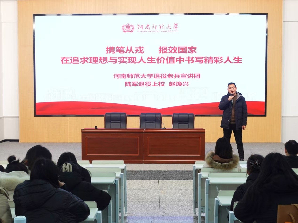 赵焕兴从部队概况、军营生活、日常训练、主要工作等方面对自身入伍经历进行分享,详细介绍了高校大学生应征入伍特有的优先考学提拔、补偿学费、退役后享受升学就业优惠等优抚政策,并对同学们关心的问题进行一一解答。他指出,续写青春华章,投身国防事业是每一位有志青年的光荣选择。在新时代的征程上,青年学子更应将个人理想融入国家发展大局,用实际行动践行爱国之情、强国之志。