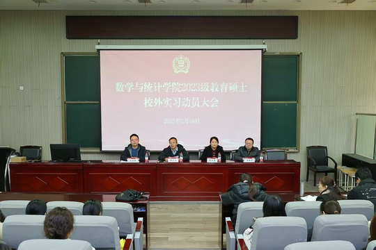 2月18日下午,数学与统计学院在学院报告厅召开2023级教育硕士校外实践动员大会。河南师大附属中学科研处副主任张凤霞、学院相关负责人、教育硕士导师以及2023级和2024级全体教育硕士参加会议,会议由副院长马迎宾主持。