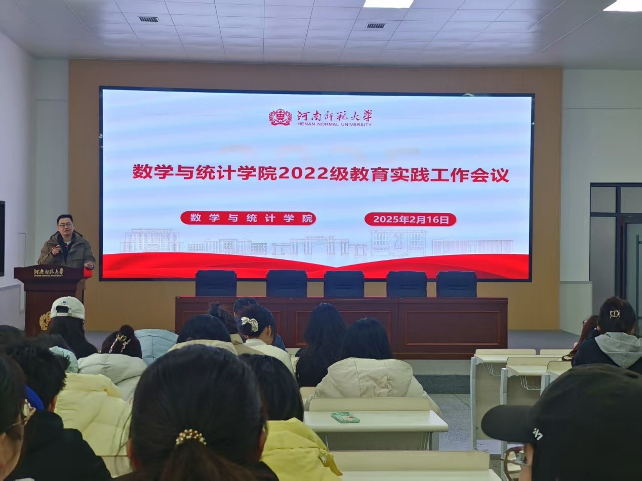为推进教育实践工作有序开展,引导学生做好实践准备,2月17日上午,数学与统计学院于万人餐厅三楼树蕙堂召开教育实践工作会议。院党委副书记、纪委书记王岩,副院长裴永刚出席,2022级师范生参加。